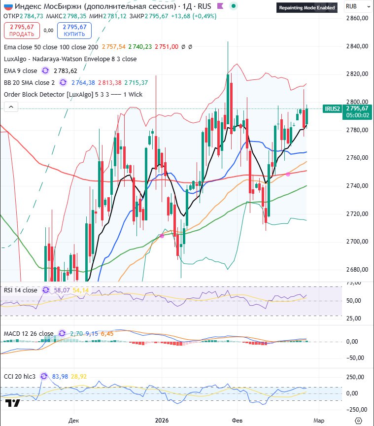 Картина рынка прежняя - по индексу Ммвб отрабатываем диапазон свечного шипа 2800 - 2820 пунктов. Как только его добьём поедем ниже!