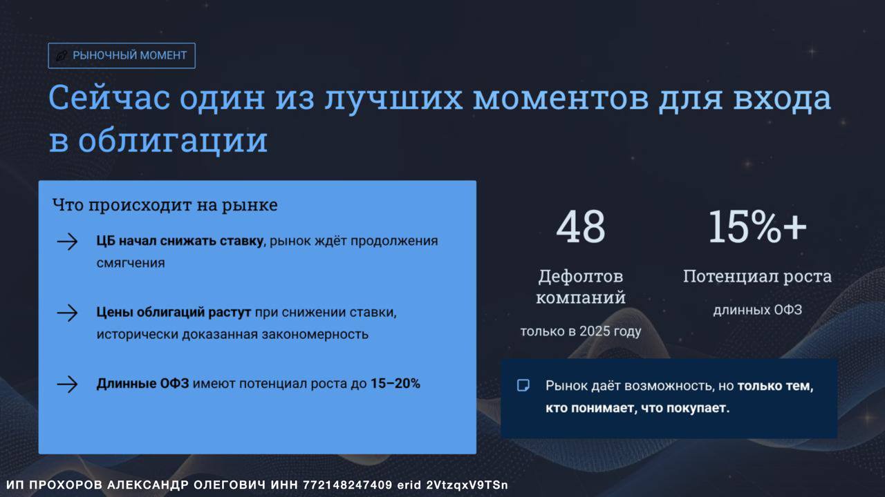 Сейчас — особенно хорошее окно. Ставка ЦБ меняется, и те, кто понимает как работают облигации сейчас, получают ощутимое преимущество.