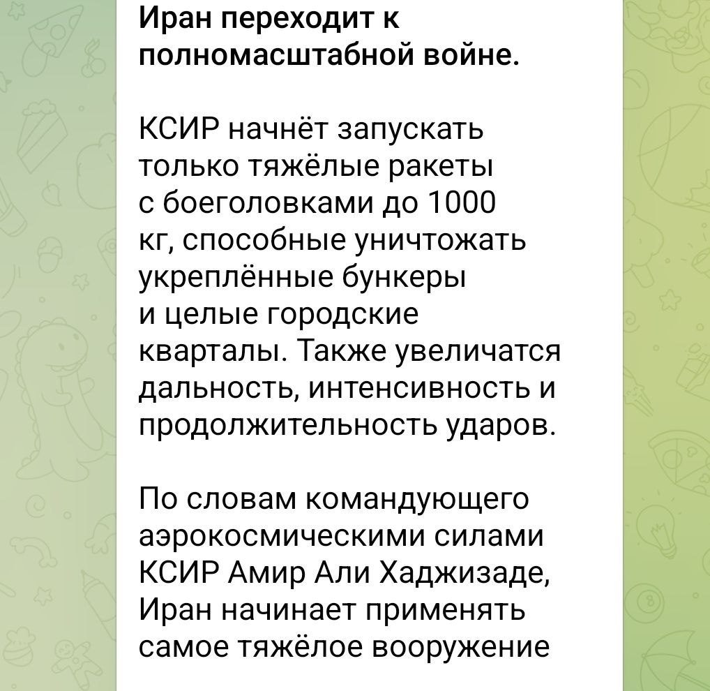 Всё это уже сейчас провоцирует глобальный энергетический шок парализуя экспорт и угрожая мировой экономике с ежедневными потерями цифры которых даже представить сложно. В ближайшие месяцы увидим усиление войны и соответственно рост мирового кризиса, вовлечение в войну ряда других стран и применение новых видов вооружений. А что будет дальше и к чему в итоге всё это приведет, говорил много раз. Запасайтесь необходимым и готовьте места на природе вне цивилизации, подальше от инфраструктур, которые обычно являются законными целями на любой войне, а кризис и война ожидаются долгими с переходом в глобальную 3 мировую в которой применяться будет всё, включая полноценное ЯО.