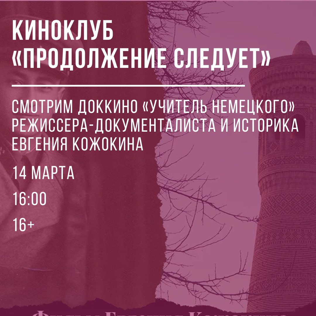 14 марта в 16:00 вспоминаем и обсуждаем фильм Евгения Кожокина, режиссера документального кино и историка, «Учитель немецкого».