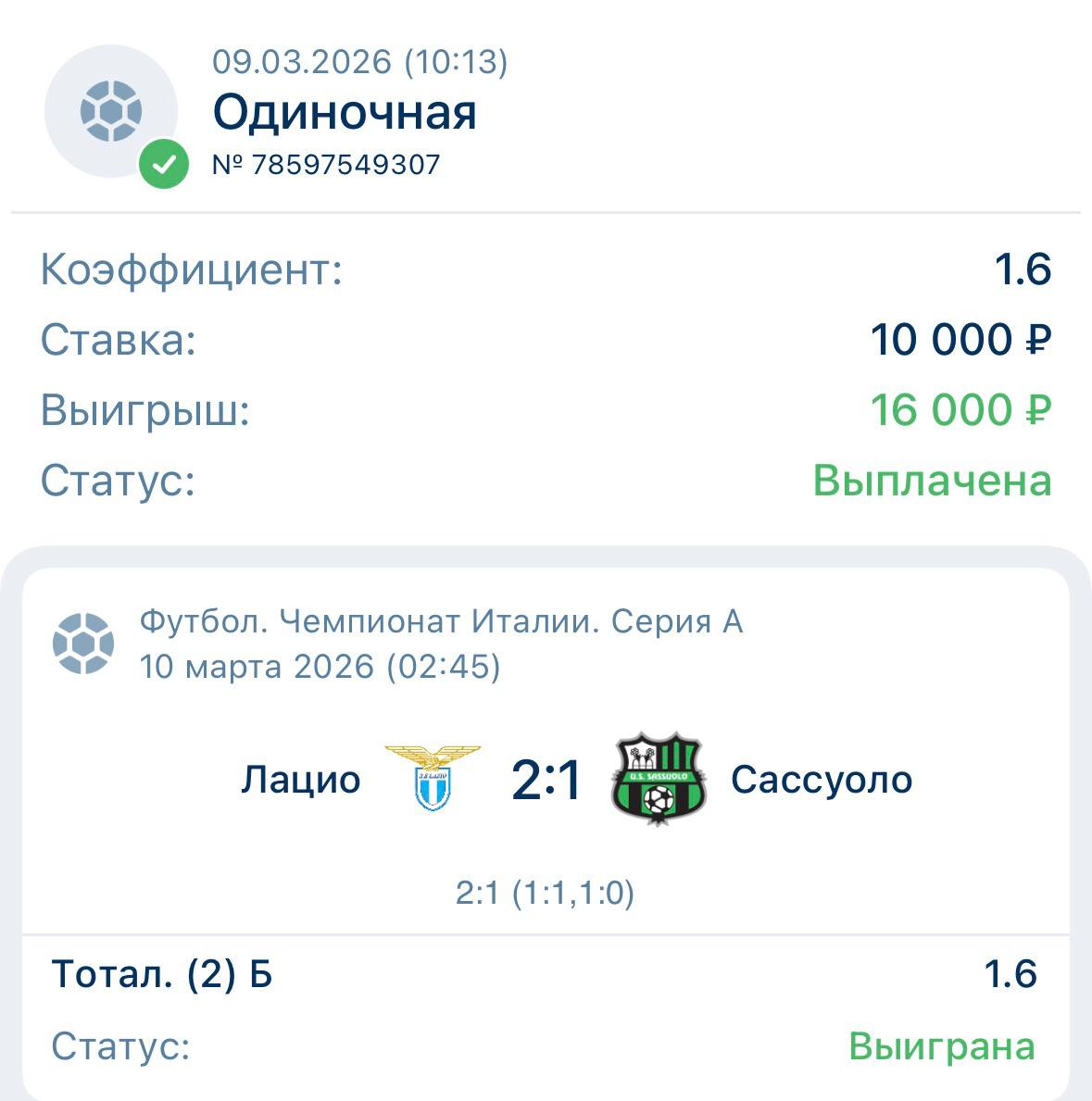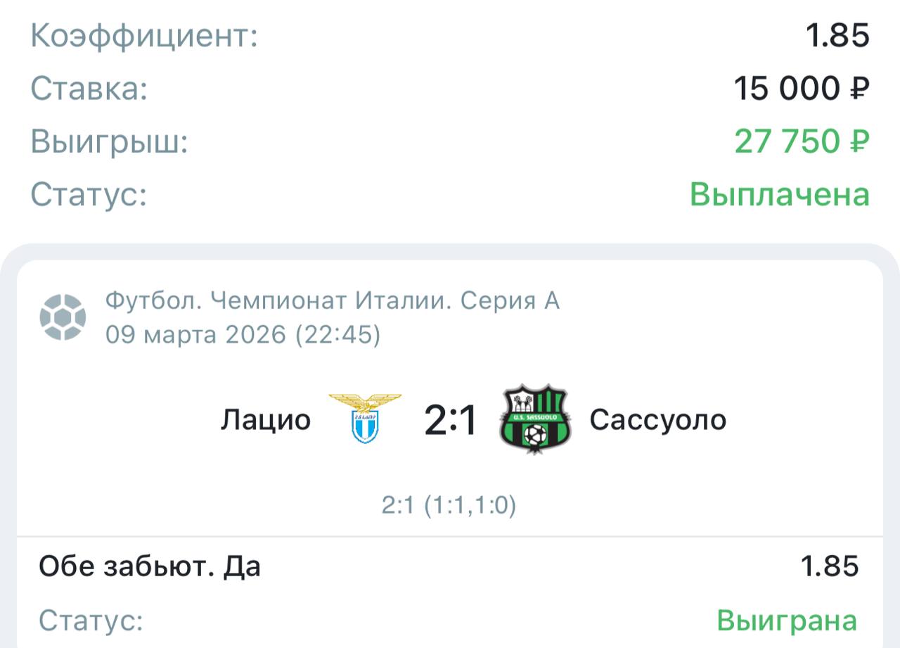 🇮🇹 Лацио — Сассуоло 🇮🇹 2:1