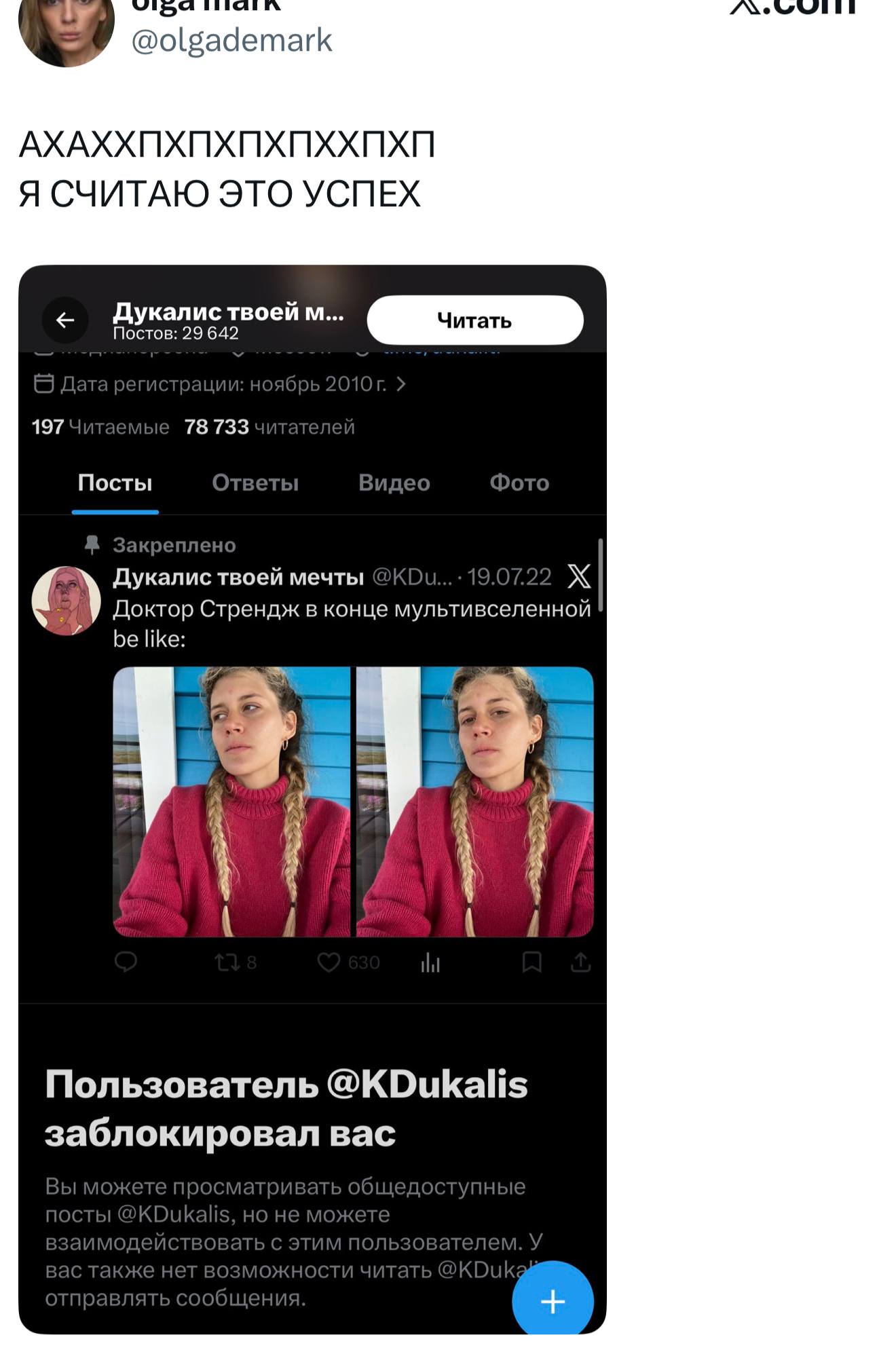 Почему некоторые люди считают, что когда блогер их заблокировал, то они такие «хахахах это успех». Сейчас не о себе говорю.