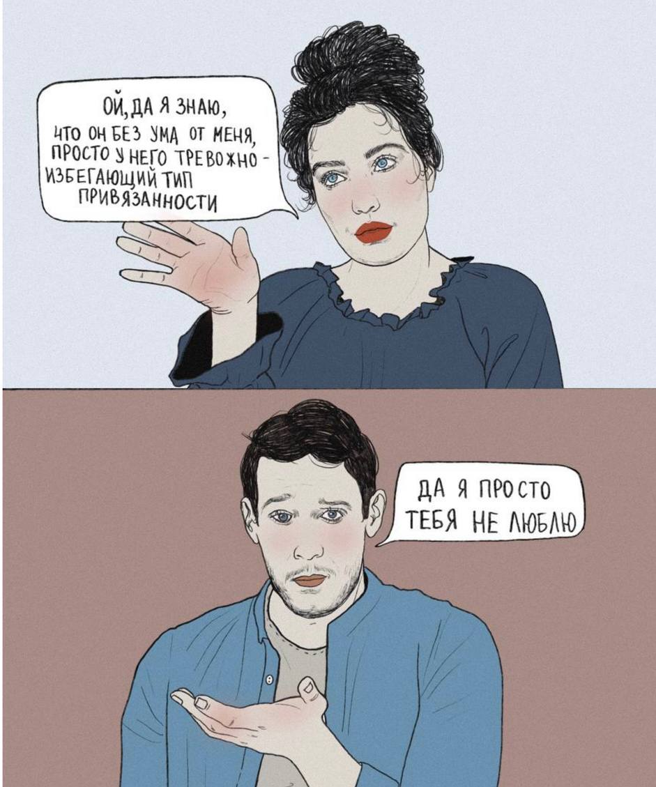 Мораль в этих многобукаф простая: пока ты сам не готов к здоровым отношениям - ты в них не войдёшь. Потому что не будет ровно никакого либидо на зрелого, «обычного» партнёра. Который кормит, уважает, обнимает и не нарушает границы. Потому что это всё кажется неестественным. А естественным: ждать когда ебнут и путать боль и жалость с любовью