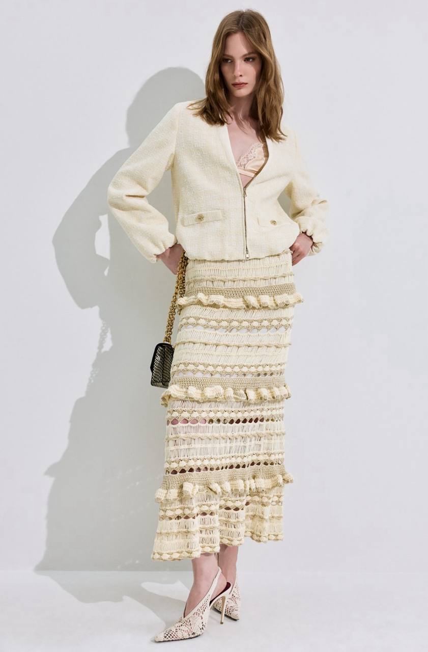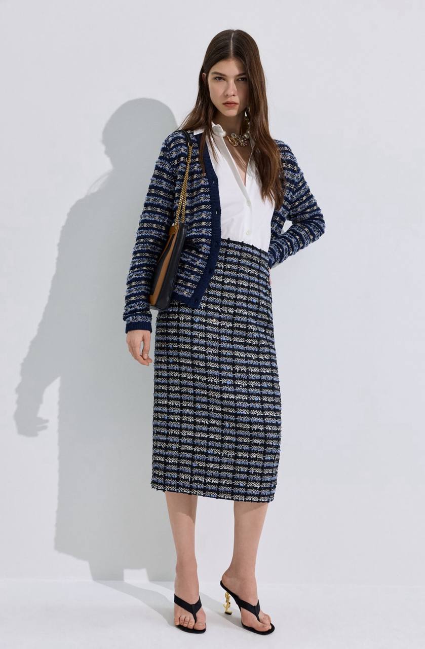 • Твид — жакеты, юбки и платья, разнообразных оттенков и фасонов.