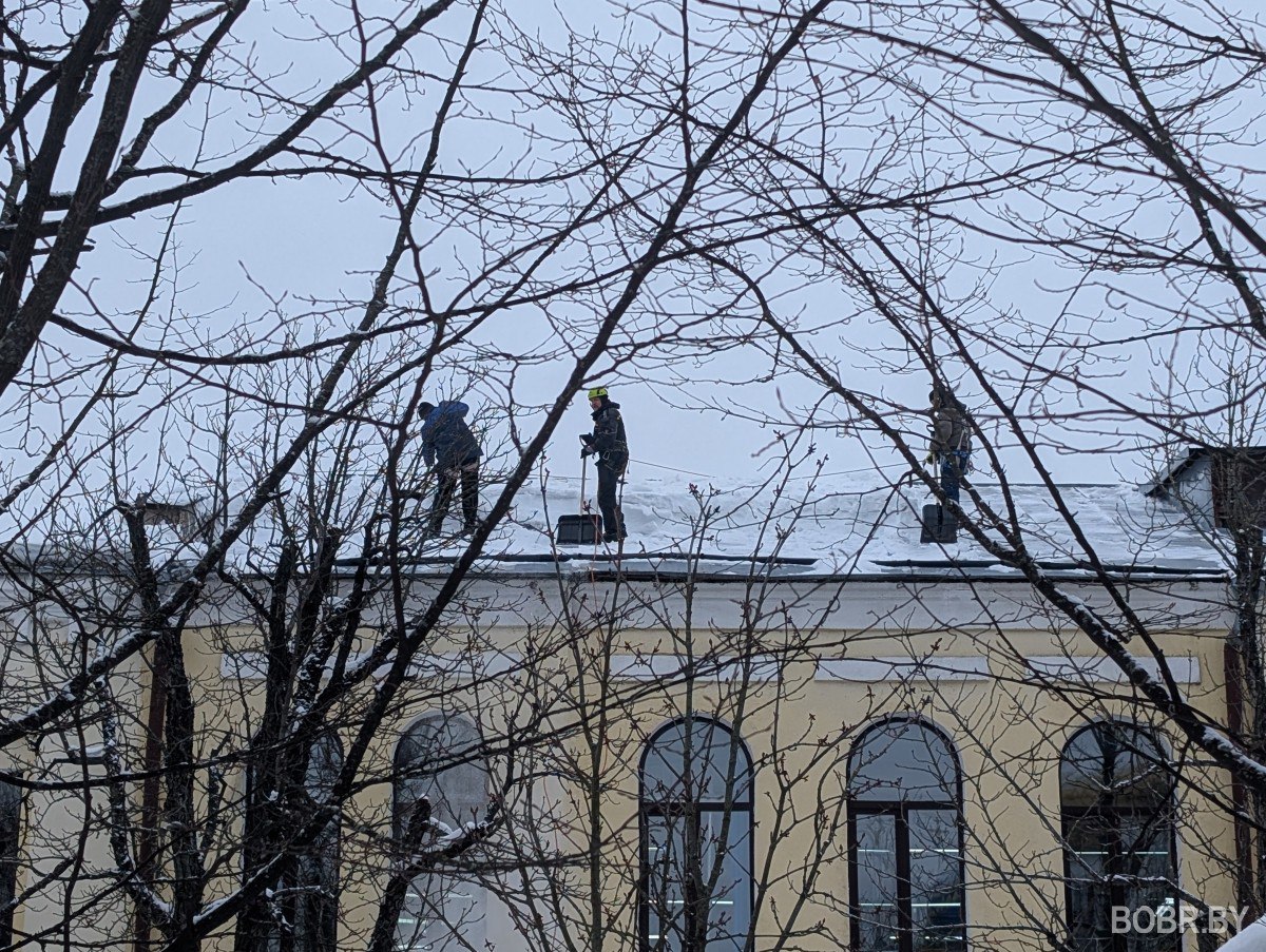 Снега на крыше по колено. На «Славянке» чистят кровлю ВИДЕО