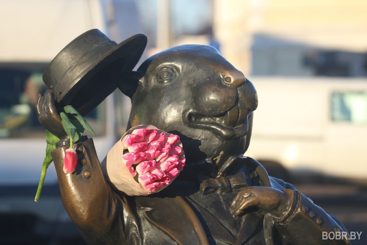 8 марта в Бобруске: тюльпаны, галантный бобер и мартовские котики. Фоторепортаж BOBR.BY