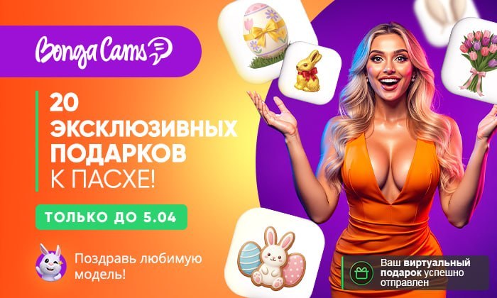 Специально к празднику на сайт добавлена уникальная коллекция из 20 виртуальных подарков, которые вы можете отправить понравившимся моделям! 🤩