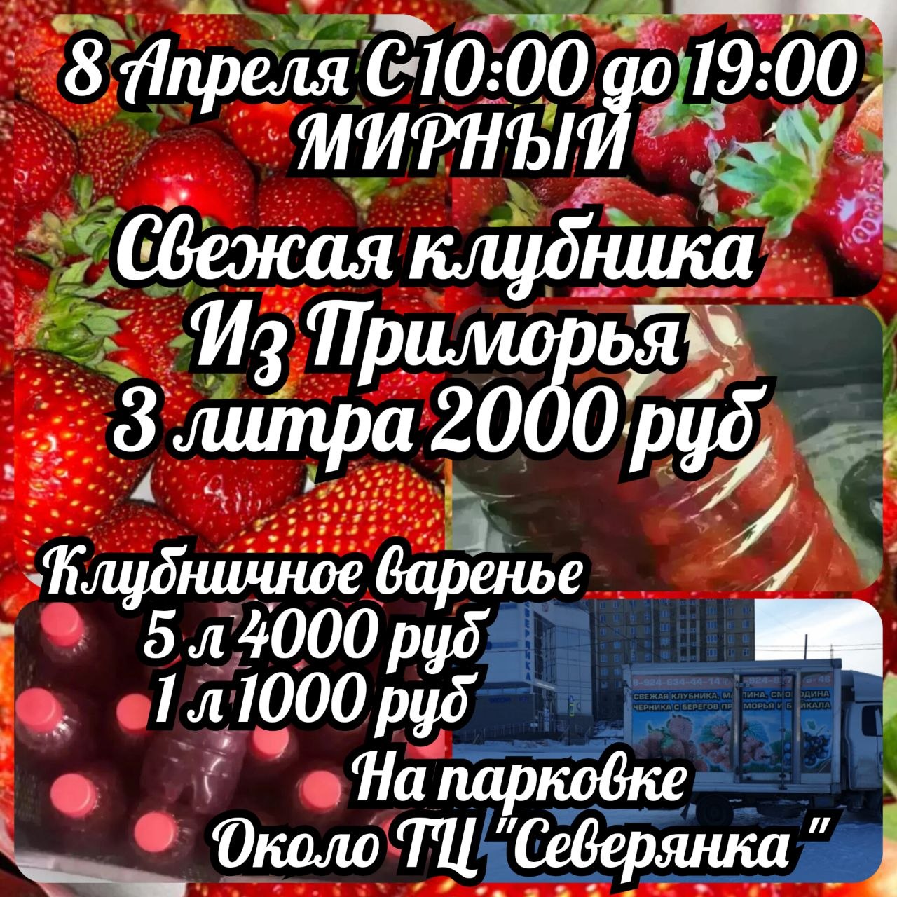 🚚Машина со свежей ягодой и вареньем будет стоять на парковке около ТЦ " Северянка "