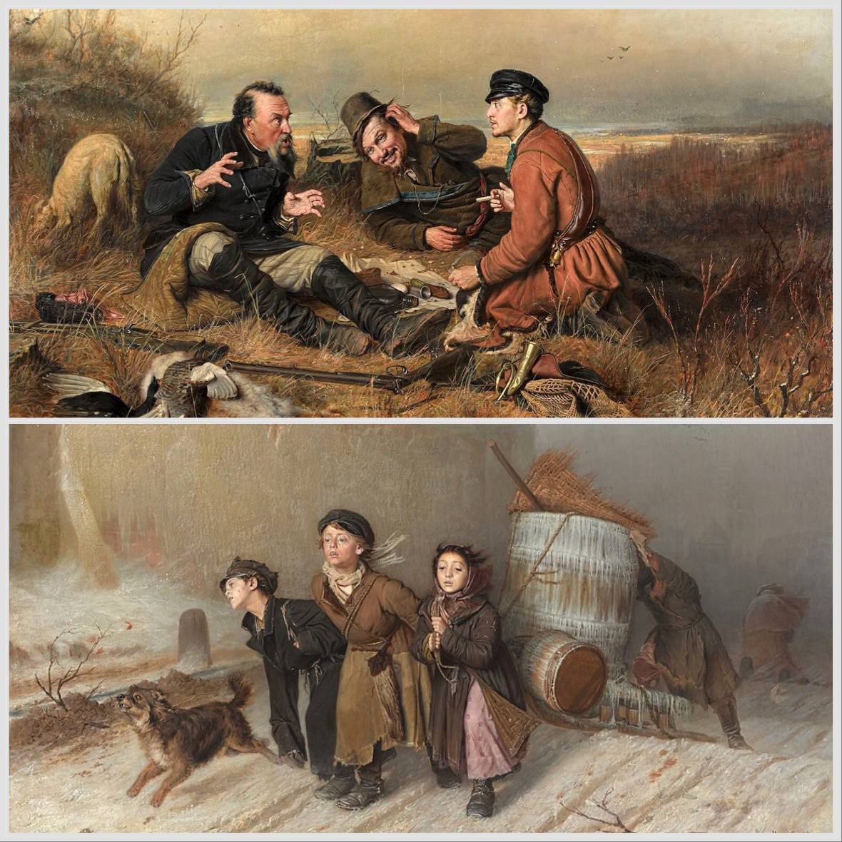 🎨🖼 Во второй половине 1860-х годов Перов создал свои лучшие произведения: "Проводы покойника", "Тройка", "Утопленница", "Приезд гувернантки в купеческий дом", "Последний кабак у заставы". Каждая из них – законченная новелла о человеческом горе, судьбе, его начинают называть "поэтом скорби". Позднее художник создает не менее знаменитые полотна со сценами из жизни русской провинции – "Птицелов", "Охотники на привале", "Ботаник".