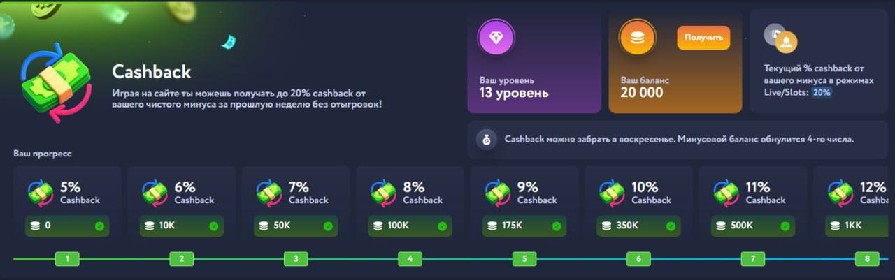 ✔️Еженедельный CashBack до 20% без вейджера