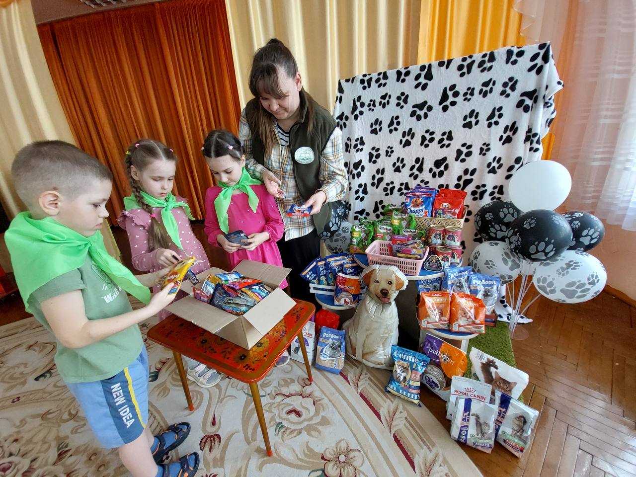 Дети вместе с родителями приносили сухой и влажный корм, консервы для кошек и собак. Каждый принесённый пакетик корма становился маленьким, но очень важным вкладом в спасение чьей-то жизни.