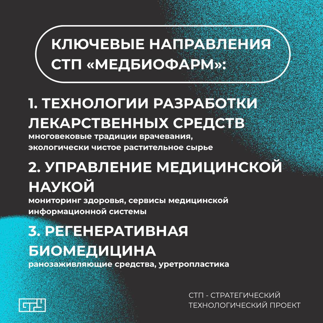 Ключевой проект нашего университета «МедБиоФарм». Он объединил в себе три ключевых направления: регенеративную биомедицину, фармацевтику и кибермедицинские системы. О результатах стратегического технологического проекта "МедБиоФарм" рассказываем в карточках.