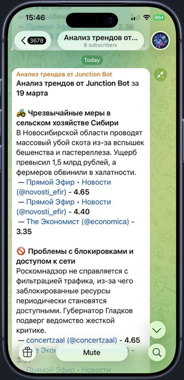 ⚡️ Прекращаем тратить ЧАСЫ на думскроллинг — в Junction Bot появилась фича ИИ-дайджестов. Сотни непрочитанных сообщений превратят в ПАРУ постов.