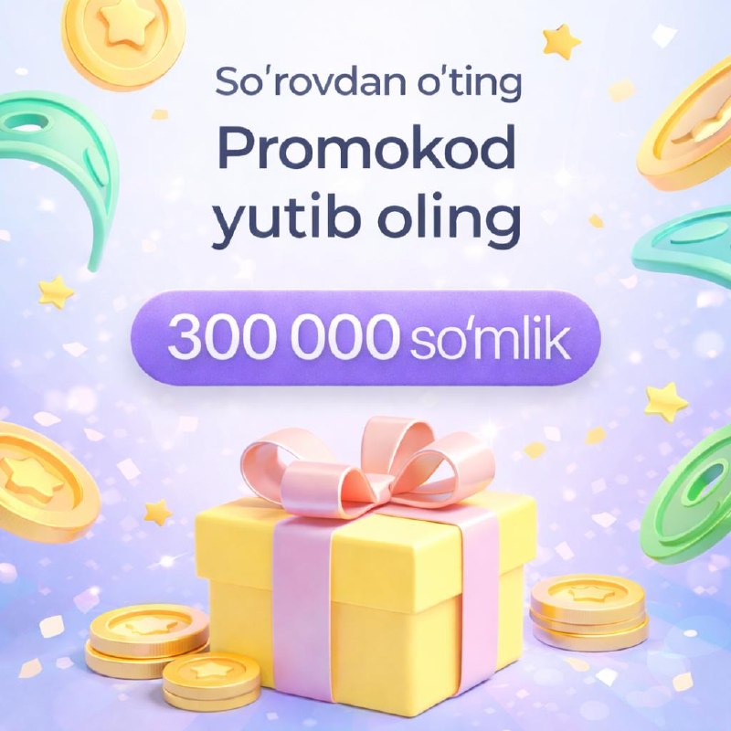 😍3 mln so'm va undan ortiq summada xaridlar qiling va qimmatbaho sovg'alar yutib olish imkoniyatiga ega bo'ling!