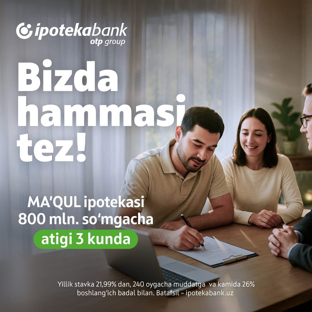 Maqul ipoteka: 21,99 %, uy uchun 20 yilgacha