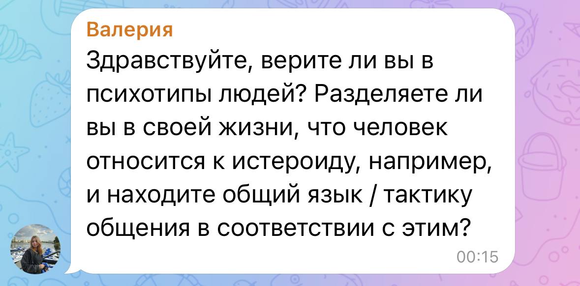 Так что да, я и в жизни, и в работе учитываю, с каким типом структуры характера имею дело, чтобы говорить с человеком на понятном ему языке.