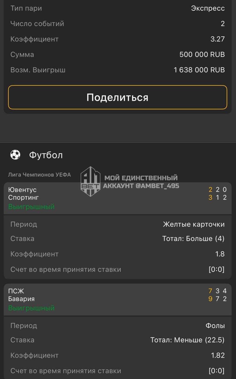 Отличный разогрев перед ЛЧ🏆 балансы пополнены, пора уже нам с вами перейти к основной ставке этого дня❤️