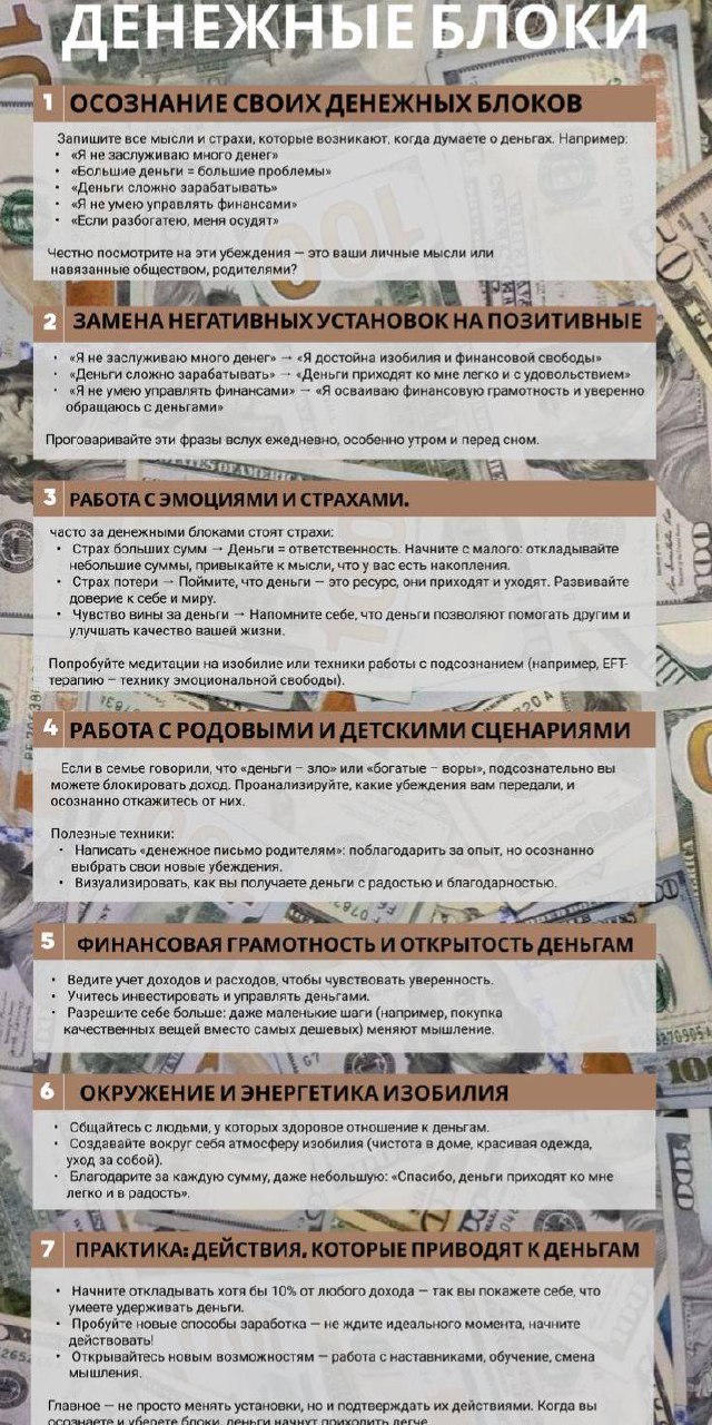 4. Первые деньги украли или отобрали. Последствия: травма, связанная с деньгами, — страх потери, недоверие к миру. Во взрослой жизни может выражаться в: