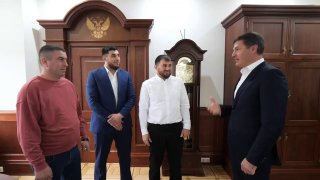 Неравнодушные мужчины аккуратно сняли ребёнка с козырька и передали его матери. Глава округа поблагодарил Альфреда и Нурудина за проявленную отзывчивость и вручил им награды.