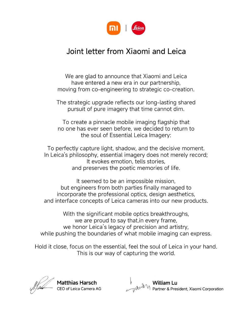 Xiaomi и Leica переходят на новый этап сотрудничества — от совместной разработки к стратегическому со-созданию.