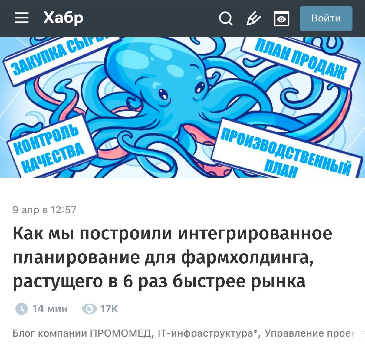Неожиданно: фармкомпания «Промомед» выкатила на Хабре огромную статью про то, как создала систему планирования всего производственного процесса, вплоть до продаж, на базе 1С:ERP. Спойлер — это не просто внедрение софта, а сборка системы управления всем бизнесом 🤔