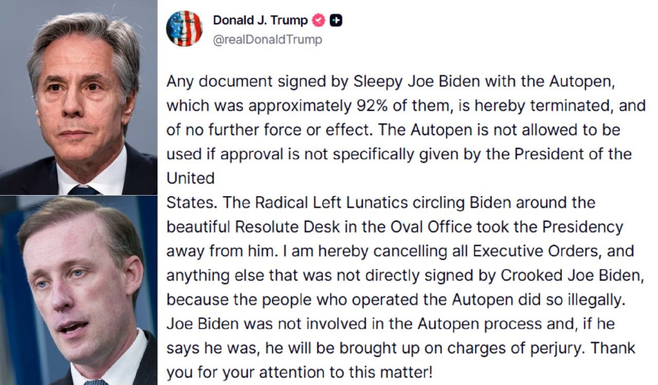 Круто! Правда, автоподпись по их законам вполне действительна и много раз применялась другими президентами, а не только Байденом. Поэтому Трампу очень быстро скажут, что этот его твит тоже недействителен. Но потому и круто, что Трампу на это плевать. Жгите дальше!