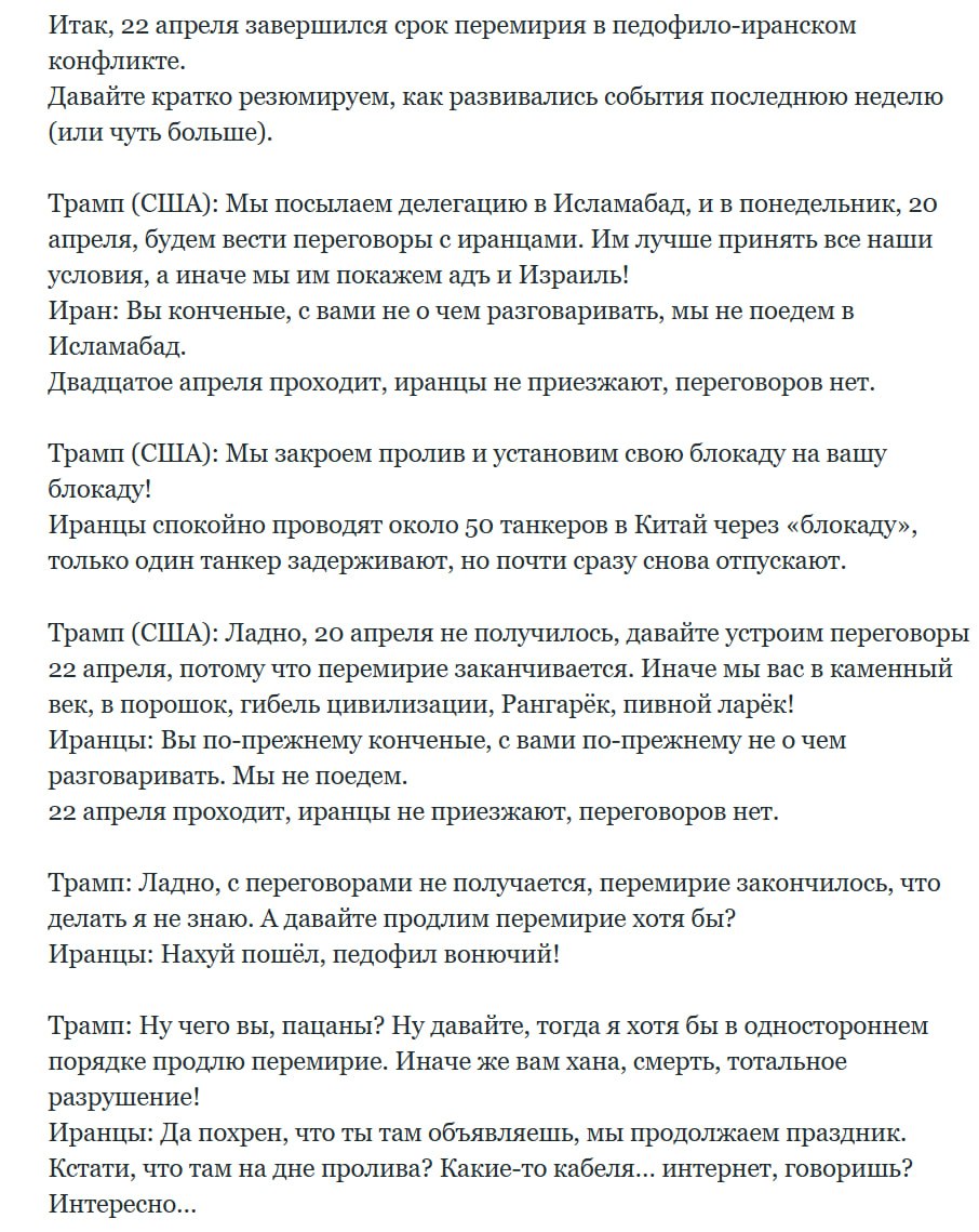 Всем следует немедленно покинуть ОАЭ, Катар, Бахрейн, Саудовскую Аравию и Кувейт. Моряки всех судов в Персидском заливе также должны подготовиться к эвакуации своих судов. Это особенно актуально для судов, находящихся вблизи Ормузского пролива, которые будут уничтожены в первую очередь. Время на исходе.