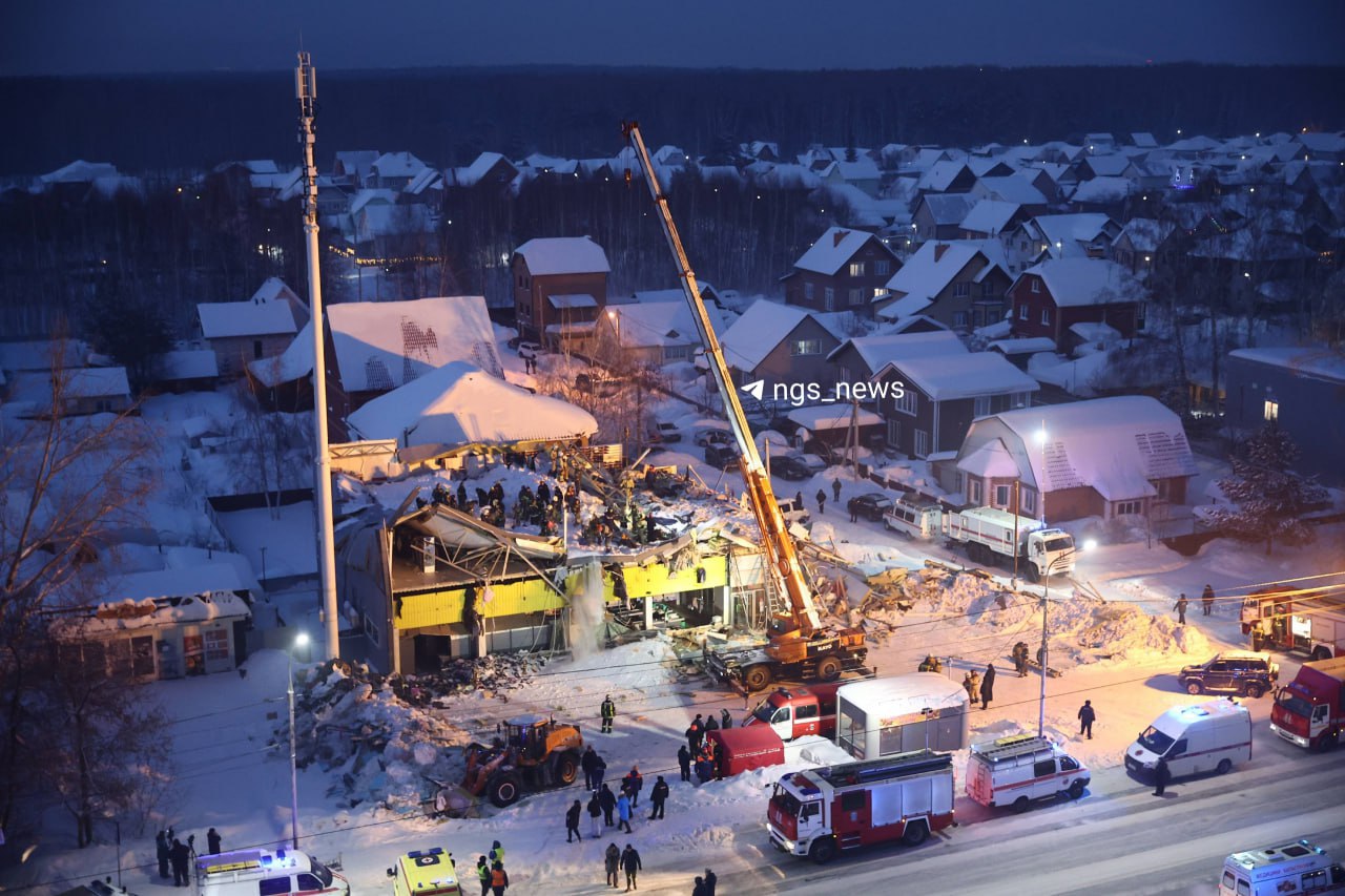 На самом деле всё намного произаичнее и скучнее — в отдалённом районе где-то между Новосибирском, Академгородком и Кольцово, на краю частного сектора стоял построенный из говна и палок ТЦ, в котором располагался стандартный набор точек для такого места: супермаркет, алкомаркет, суши-бар, а также обувной магазин. Так как был построено здание было явно не очень качественно, а снега выпало этой зимой крайне много, а его по каким-то причинам с крыши здания не убрали, то второй этаж и сложился, как карточный домик, ранив двоих людей и погребя под завалами ещё какое-то их число. Двух женщин МЧС уже, кстати, достало из под обрушившихся конструкций вполне себе живыми, хотя и травмированными. Точное число посетителей, которые были на момент обрушения в ТЦ, неизвестно, но региональные журналисты дают, например, такие комментарии очевидцев: