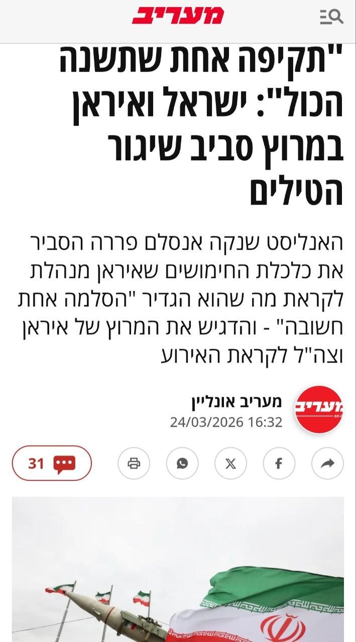 🖍 Израильская газета "Маарив" утверждает, что Иран готовится к "решающей битве, которая изменит все"