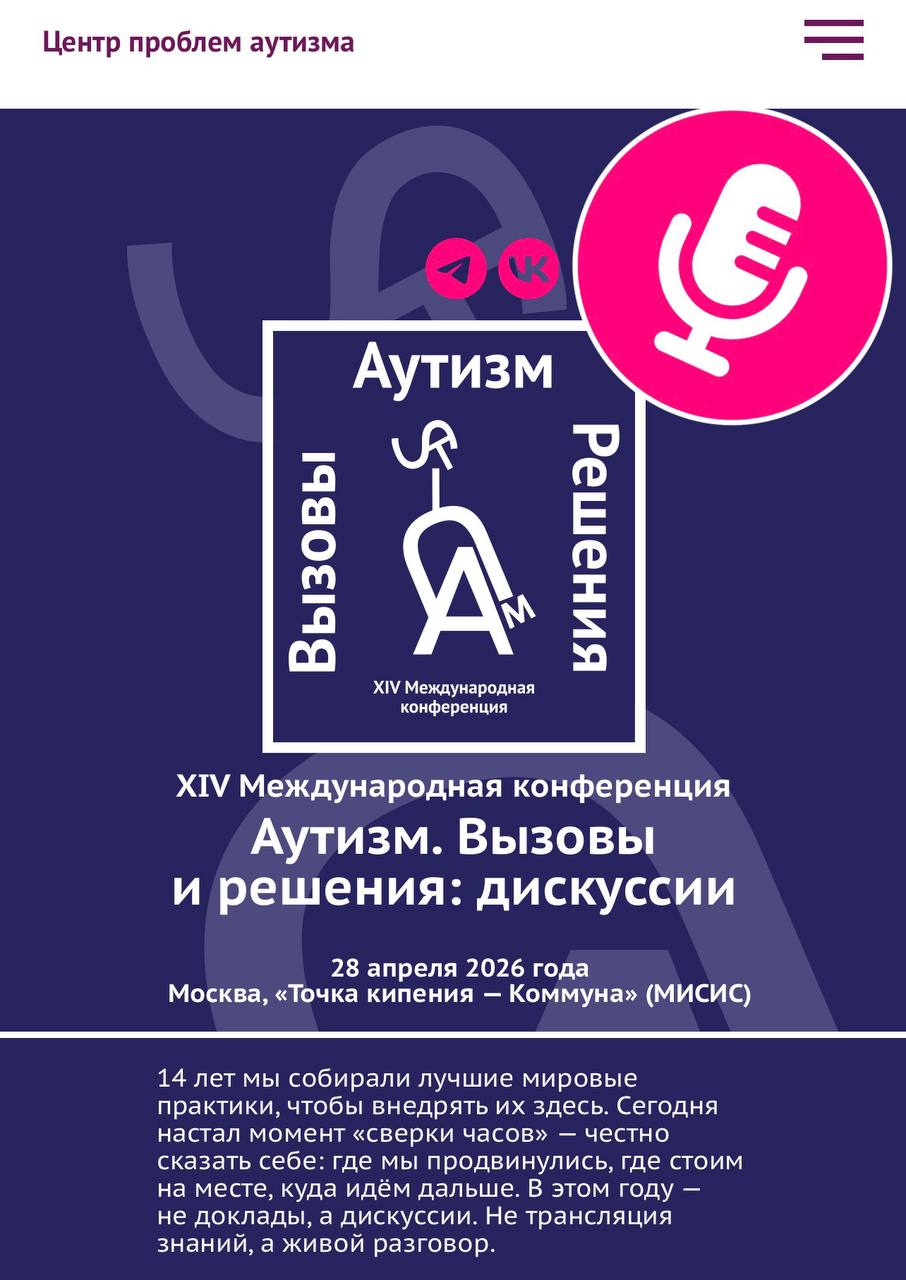 Уже завтра состоится XIV МЕЖДУНАРОДНАЯ НАУЧНО - ПРАКТИЧЕСКАЯ КОНФЕРЕНЦИЯ «АУТИЗМ. ВЫЗОВЫ И РЕШЕНИЯ» 2026.