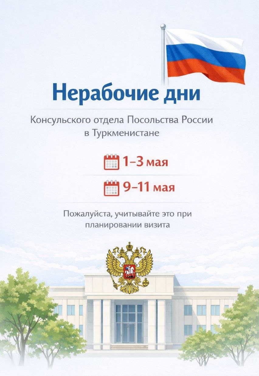 Запись в консульство ведётся на официальном сайте Посольства России в Туркменистане. Чем раньше вы начнёте процесс, тем спокойнее будут ваши поездки.