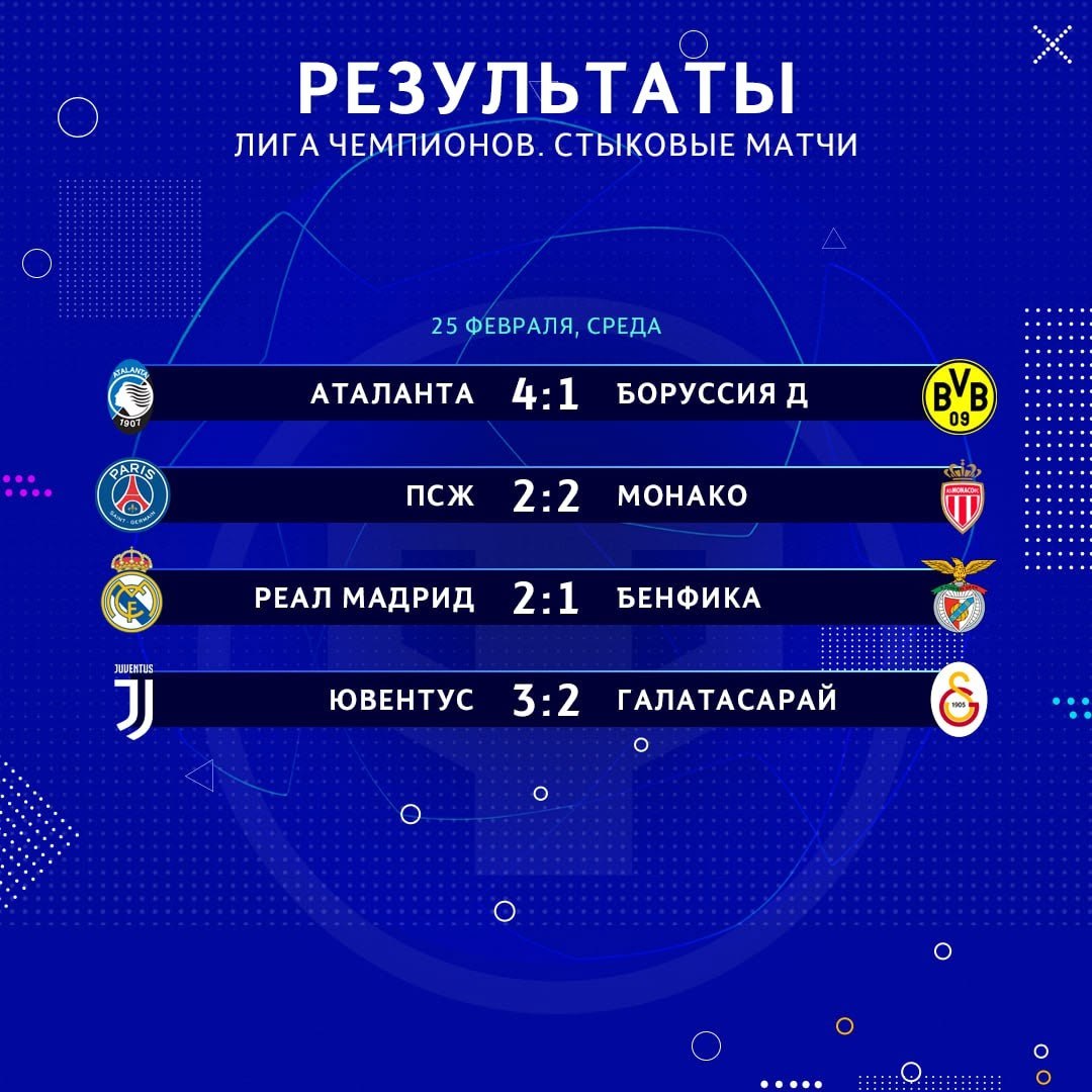 💙Сетка 1/8 финала ЛЧ
