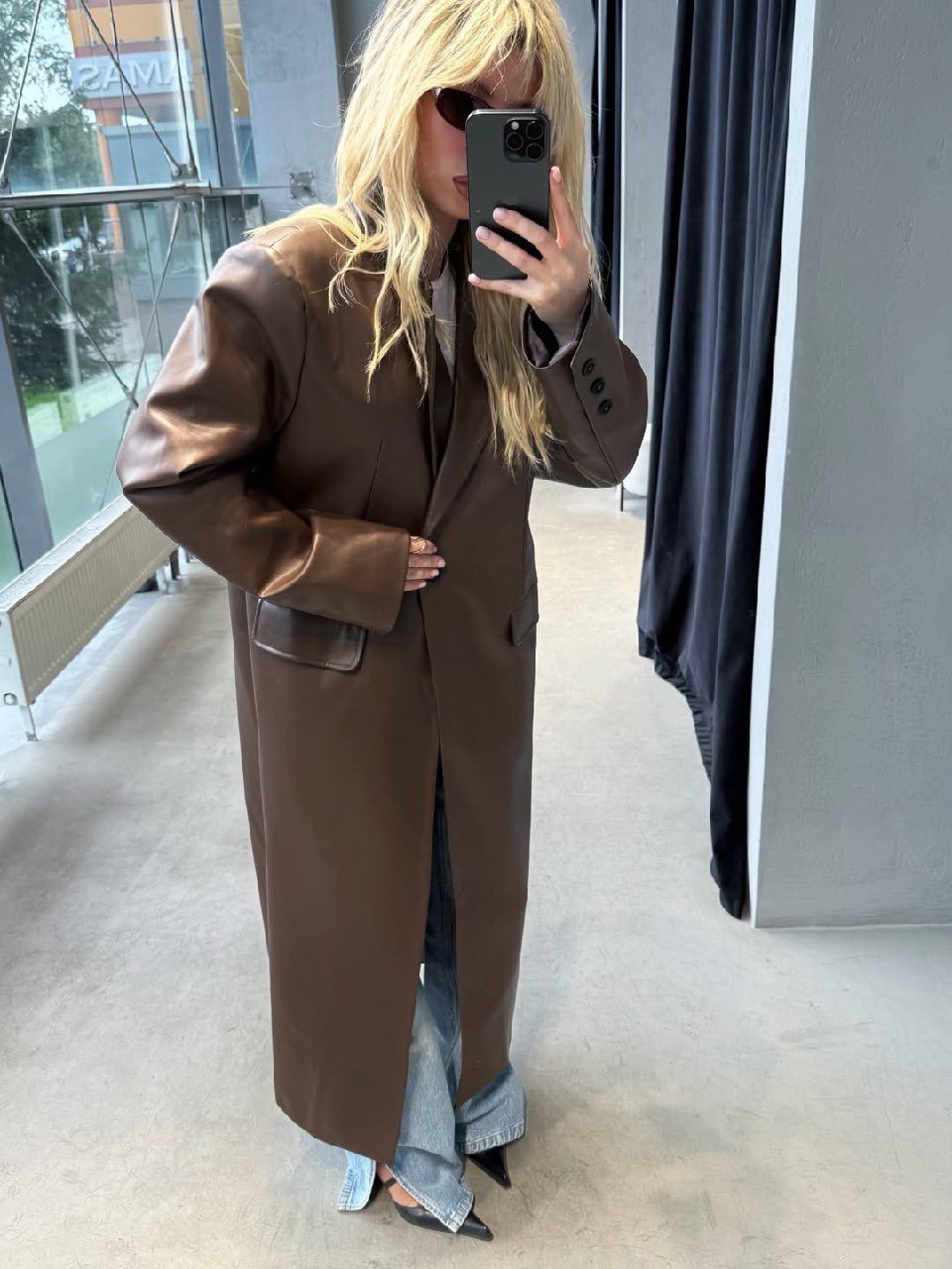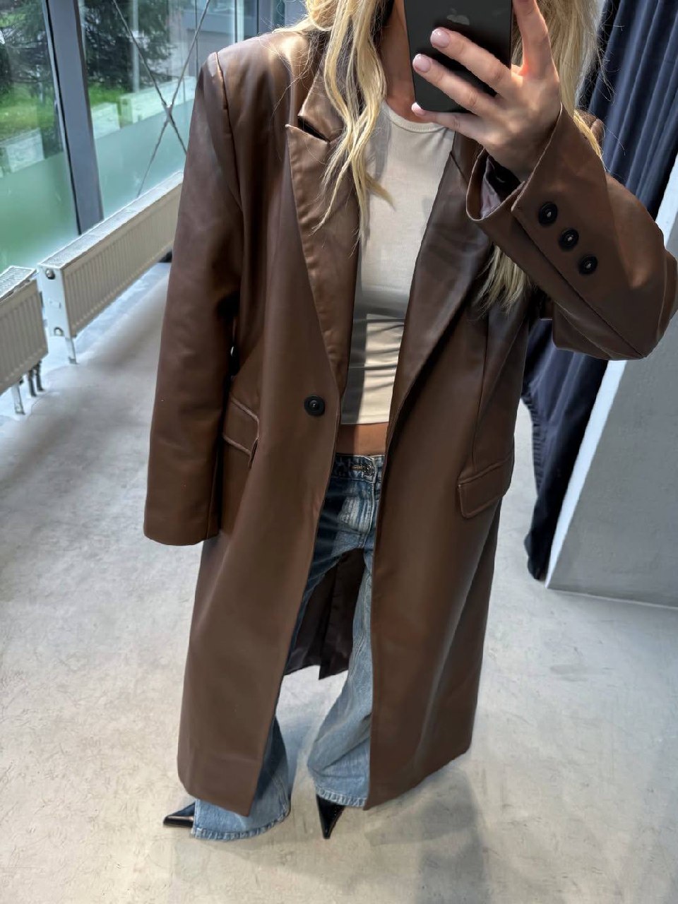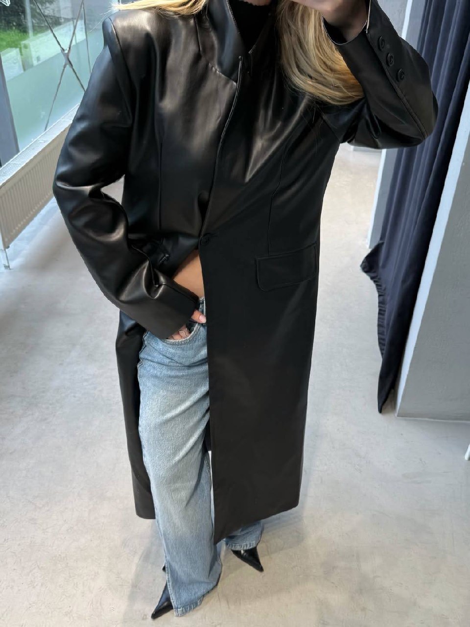 Плащ прямого кроя из экокожи