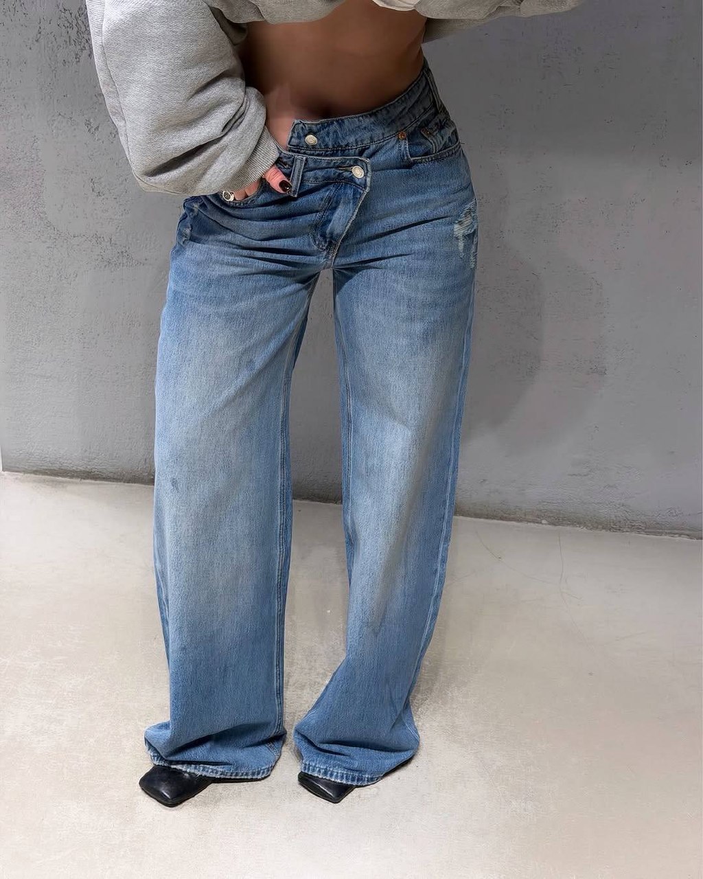 Джинсы широкие с эффектом люрекса в темно-синем цвете