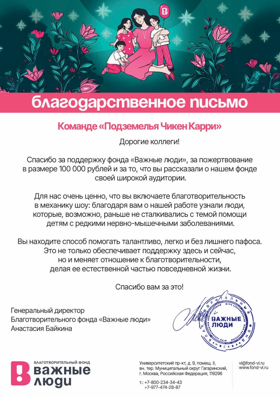 Получили приятное благодарственное письмо от фонда "Важные люди"🐥 Они занимаются помощью детям с нервно-мышечными заболеваниями и смотрят ПЧК 💪