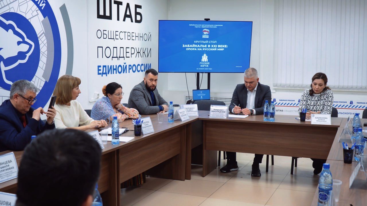 🇷🇺«Забайкалье в XXI веке: опора на Русский мир» 📌В Штабе общественной поддержки «Единой России» в Чите состоится круглый стол на тему «Забайкалье в XXI веке: опора на Русский мир». 🔹В преддверии проведения масштабного Русского форума круглый стол объединит представителей учреждений культуры, образования, органов власти и общественников. Они обсудят сохранение культурной идентичности, роль русского языка в межнациональных отношениях, сохранение уникальности, проекты и инициативы, направленные на развитие русской культуры. 🗓Начало 20 ноября в 15:00 по адресу: г. Чита, ул. Бутина, 111. #КС #Анонс #РусскийФорум #ЕР75 #Штаб75