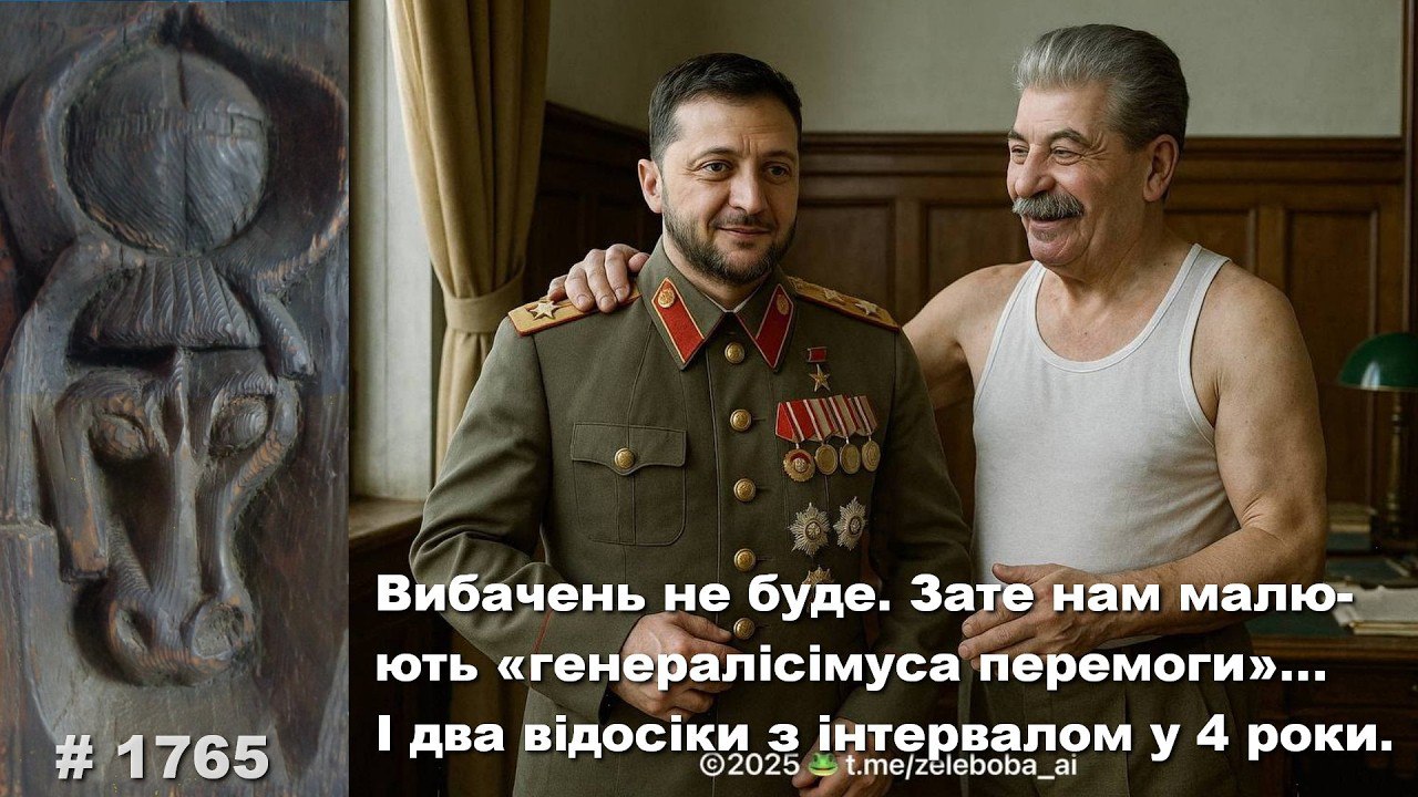 Для обкладинки ілюстрацію довго не шукав – тут ідеально пасує цей спільний портрет нового сталінчика та його історичного кумира від ТК «Зелебоба Аі».