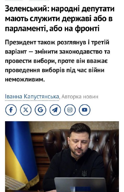 Після відігнання ворога від столиці Zейло з його опою поставили нардепам вимогу: або-або. Тоді всі думали, що війна не протриває довго, а Рада ще ого-го, тому вернулися в Парламент. Зараз у Раді є ряд нардепів, які готові долучитися до Сил Оборони, але навчені досвідом Забродського - він склав мандат і пішов до Залужного в командування, а за пару місяців Zе розгромив командування і його також звільнив із ЗСУ.
