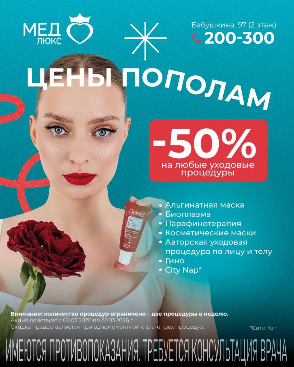 С 02.03 по 22.03.25 в косметологии «Медлюкс» — сразу несколько предложений, которые выгоднее не откладывать.