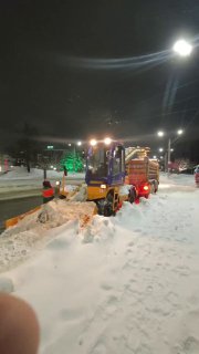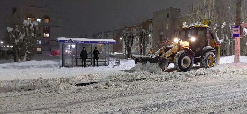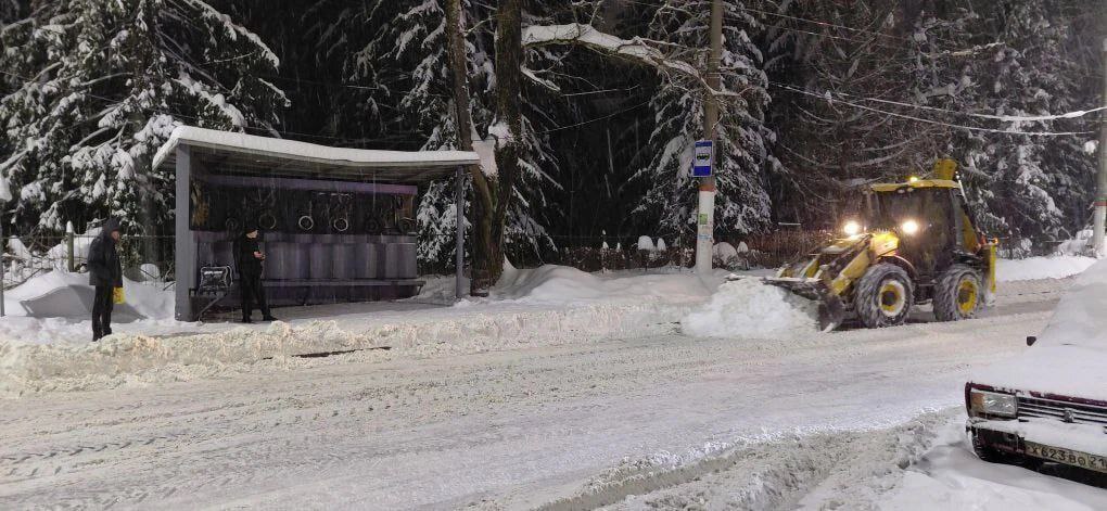 На городские улицы вывели 136 единиц спецтехники и больше сотни дорожных рабочих. Дороги и тротуары прометают и обрабатывают реагентами.