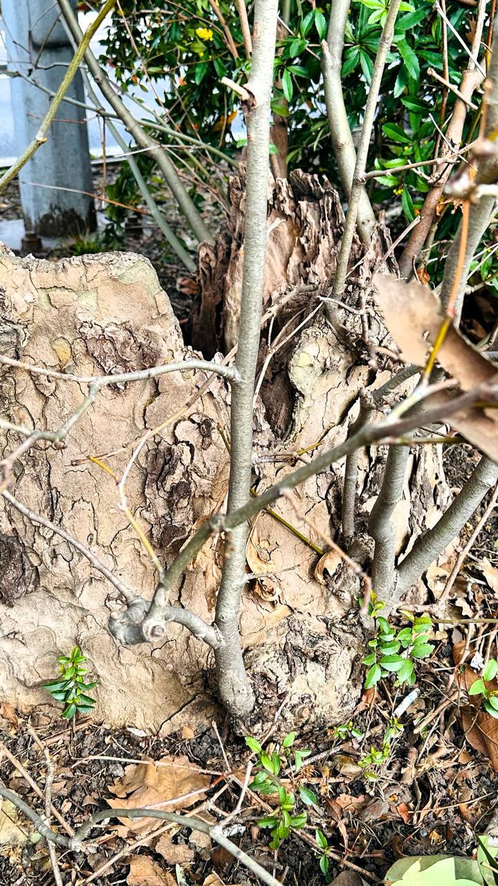 Из давно срубленного платана, сгнивший, высохший пень платана выдал совершенно свежие ветви!