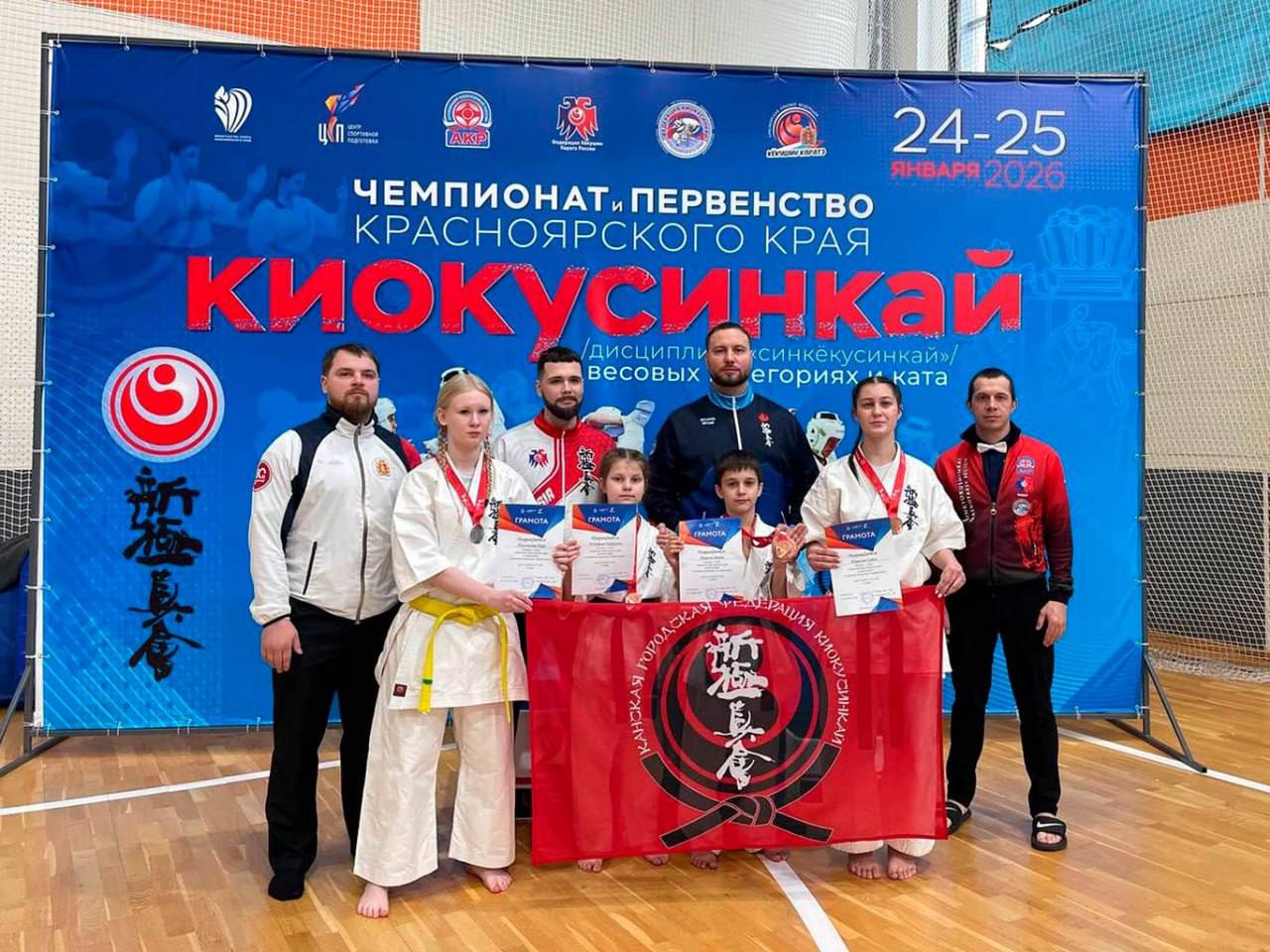 Кроме того, спортсмены Канской федерации киокусинкай были отмечены по итогам соревнований 2025 года. Особой награды удостоены Семён Кашкин, Денис Филипцев, Никита Астафьев, Степан Лихтарович, Дмитрий Кочетков, Максим Костерев, Диана Готина. Бронзовый призёр всероссийских и международных соревнований Артём Перепёлкин был отмечен и награждён ценным призом.
