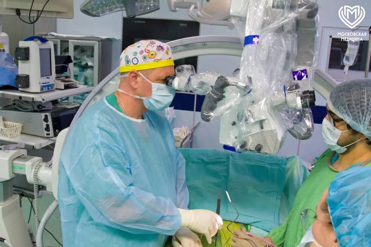 Под операционным микроскопом, с минимальным повреждением костных структур, нейрохирурги убрали гематому и устранили источник кровотечения — те самые варикозные вены. За состоянием плода во время операции следили акушеры-гинекологи.