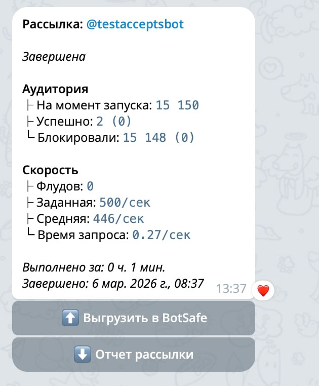 Добавлена поддержка функции Paid Broadcast от Telegram. Она позволяет отправлять до 1000 сообщений в секунду, игнорируя стандартные flood-wait ограничения.