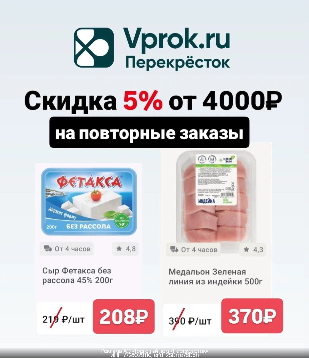 🍫 Скидки во Vprok.ru Перекрёсток на повторные заказы