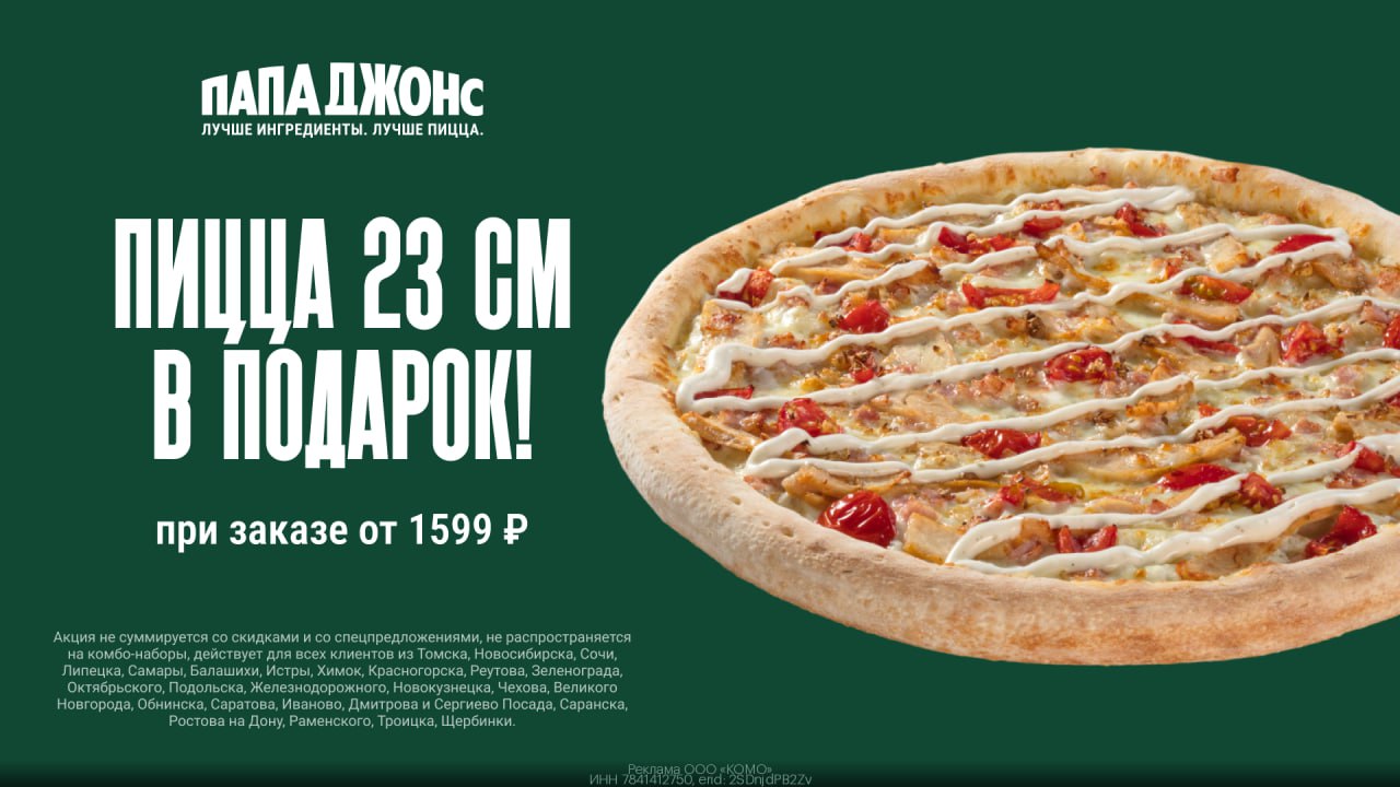 🍕 Пицца Папа Джонс в подарок