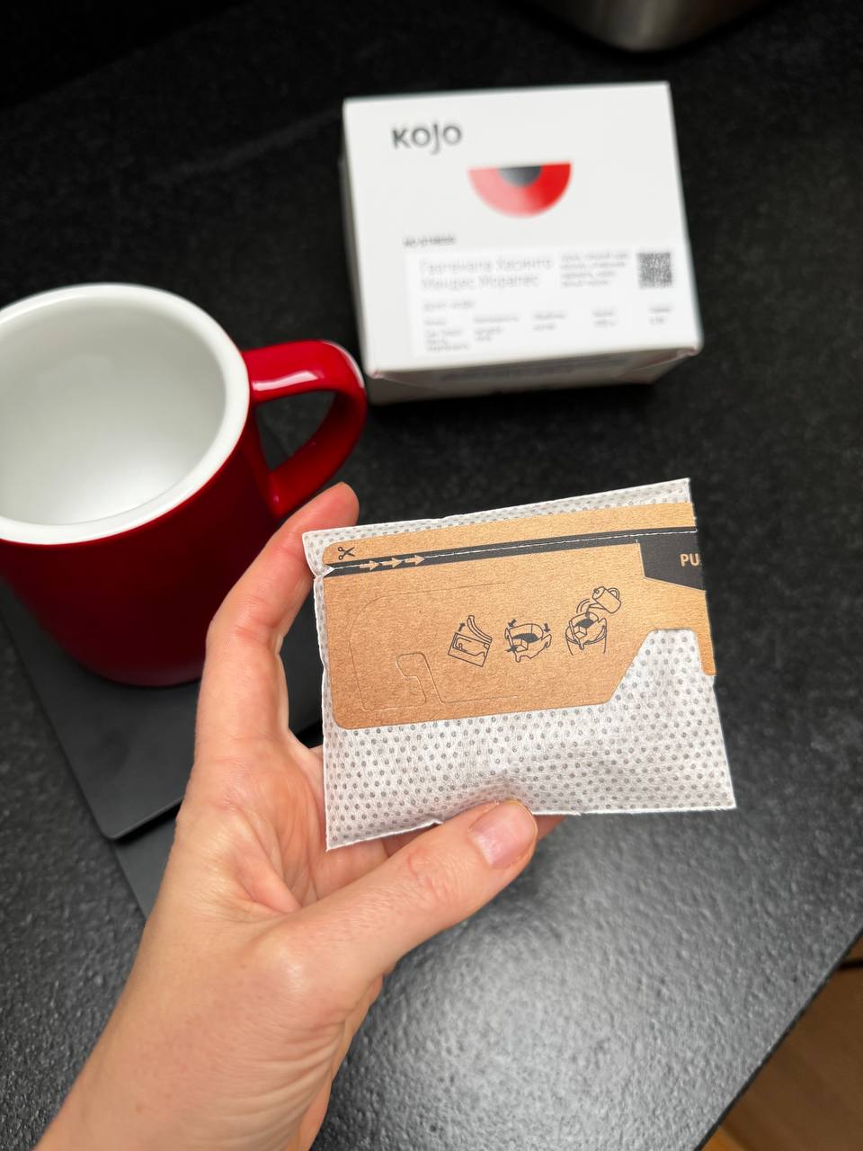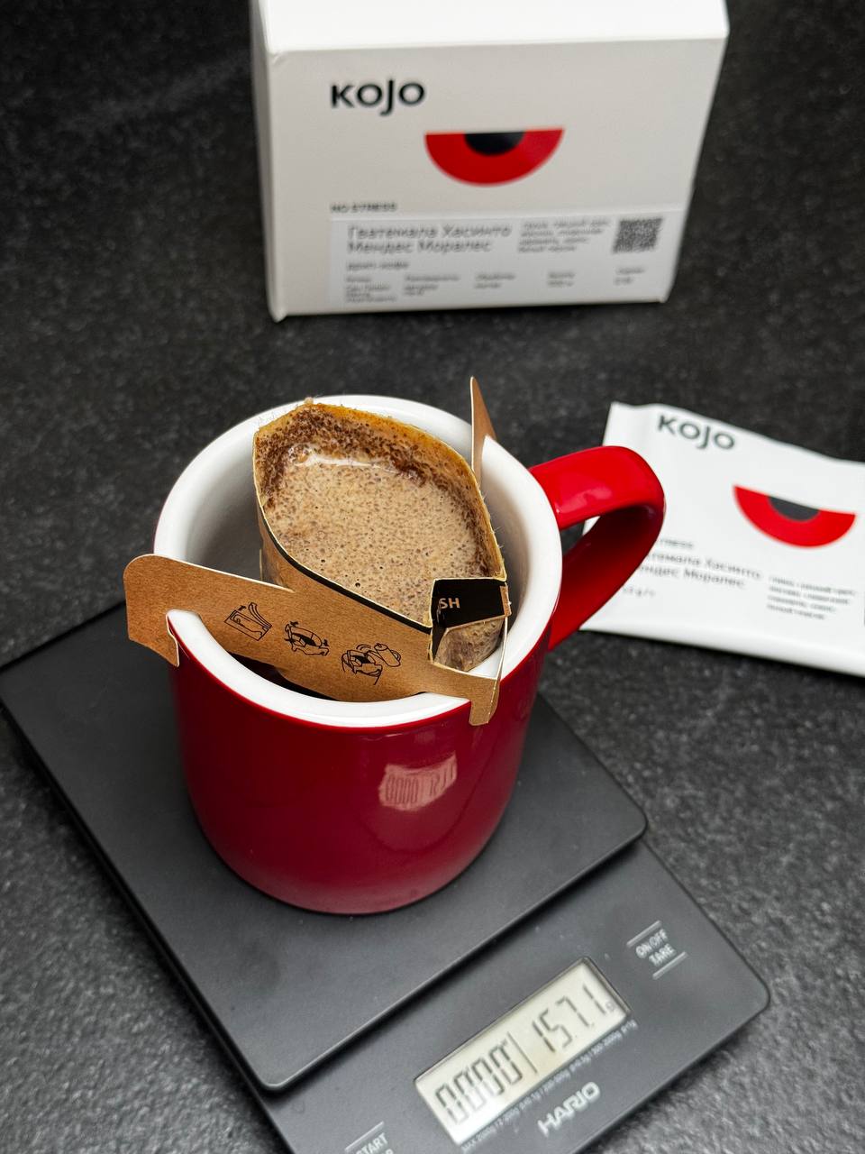 Гватемала зафасована в VFR-дрипы, которые отличаются от привычных, зато вмещают целых 13 гр зерна (~220 гр напитка на выходе). У VFR-дрипов три точки опоры на чашку и это сначала выглядят непривычно. Тут самое главное — правильно их открыть и установить. На сайте к каждому лотов дрипов есть инструкция, которая снимает все вопросы.