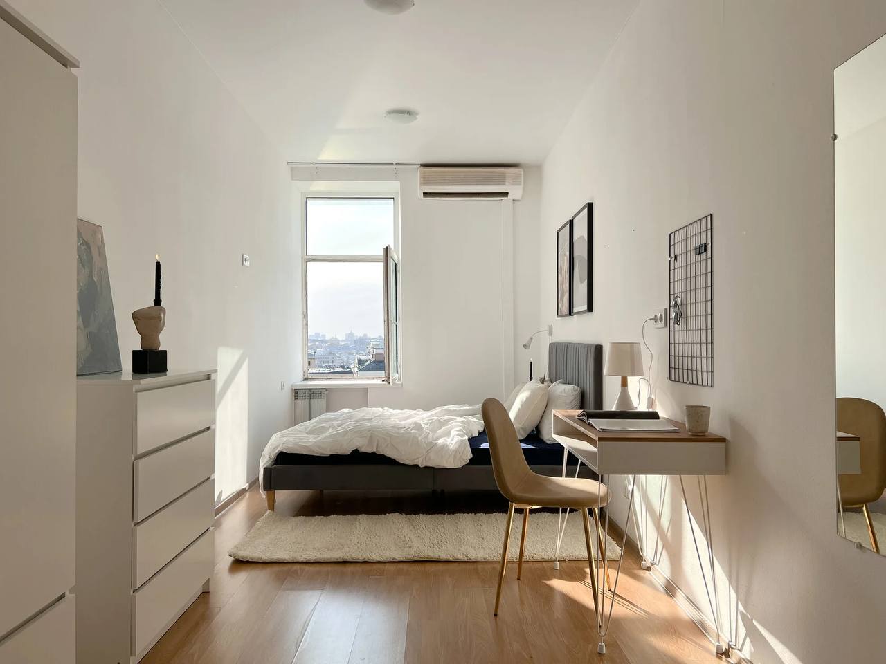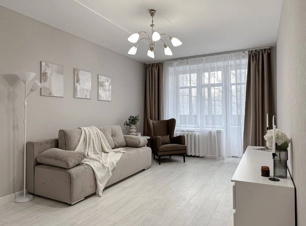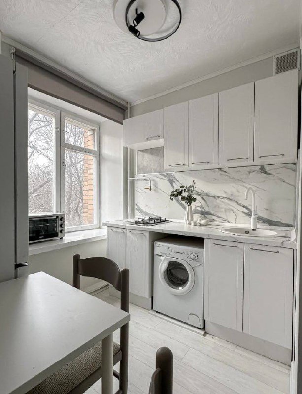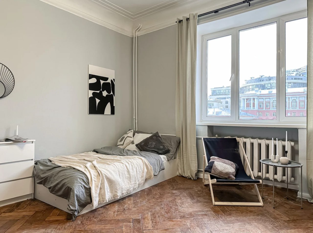 Ремонт в стиле лофт, высокие потолки и широкий подоконник, где можно сидеть с чаем и книгой. Пространство продумано для отдыха и работы: