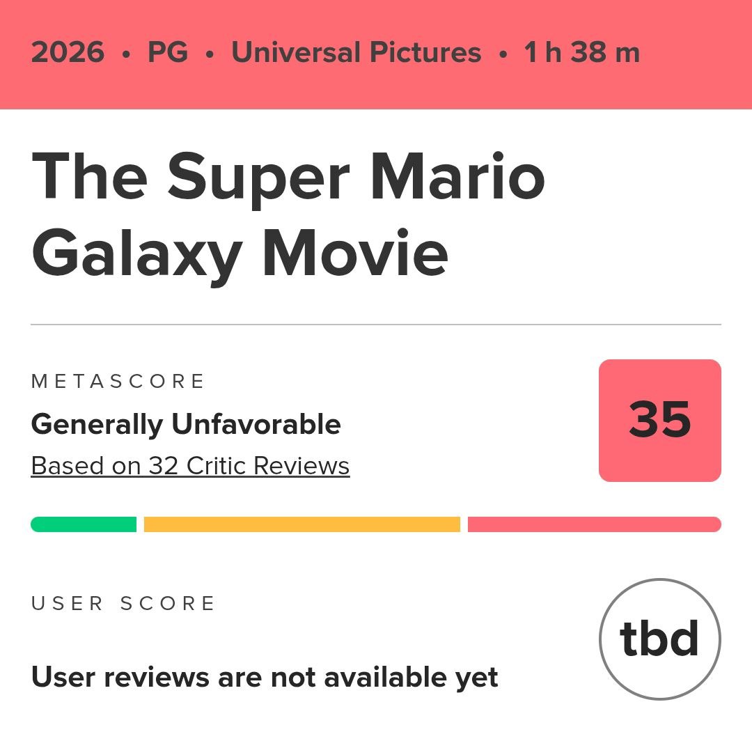 🍄 Первые оценки от критиков на мультфильм Illumination «Супер Галактика Марио» оказались даже хуже чем у первой части, которую критики тоже сочли посредственной.