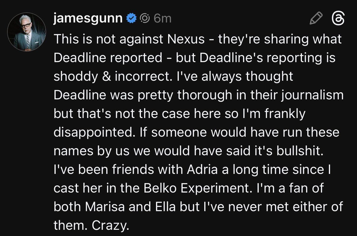 🦸♂️ 🧑🏻🦲 По данным многих источников Deadline, актриса Мариса Абела («Индустрия»), Адриа Архона («Андор», «Я не киллер») и Элла Пёрнелл («Фоллаут», «Аркэйн») проходят пробы на некую ключевую роль в фильме «Человек завтрашнего дня» Джеймса Ганна.